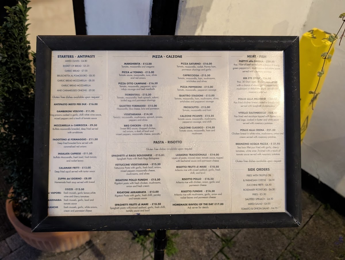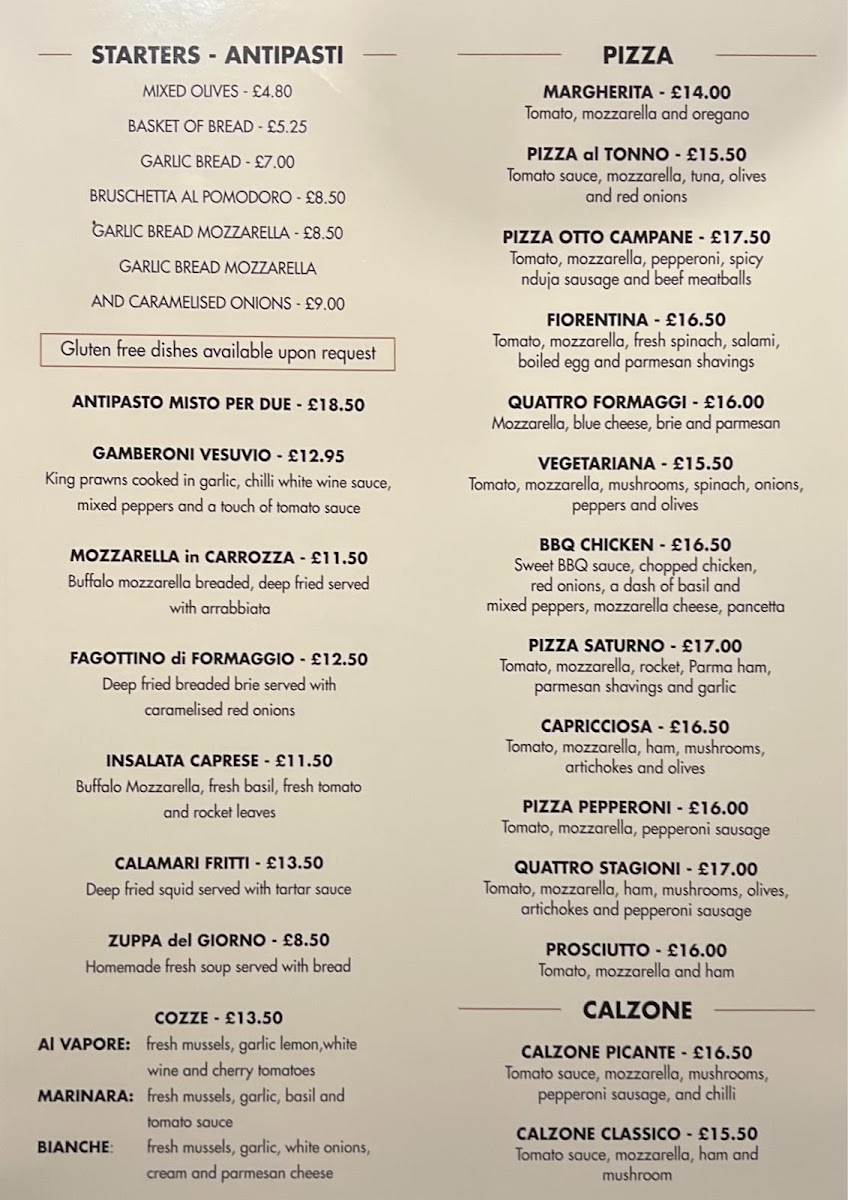 The menu at Le Otto Campane offers a thoughtfully crafted selection of Italian favourites designed for relaxed, enjoyable dining. Whether you're settling in for a casual lunch or a leisurely evening meal, you’ll find a range of dishes that feel both familiar and satisfying.